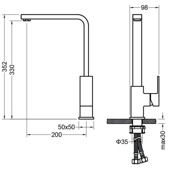 Смеситель для кухни с подключением к фильтру Ulgran темно-серый U-016-309