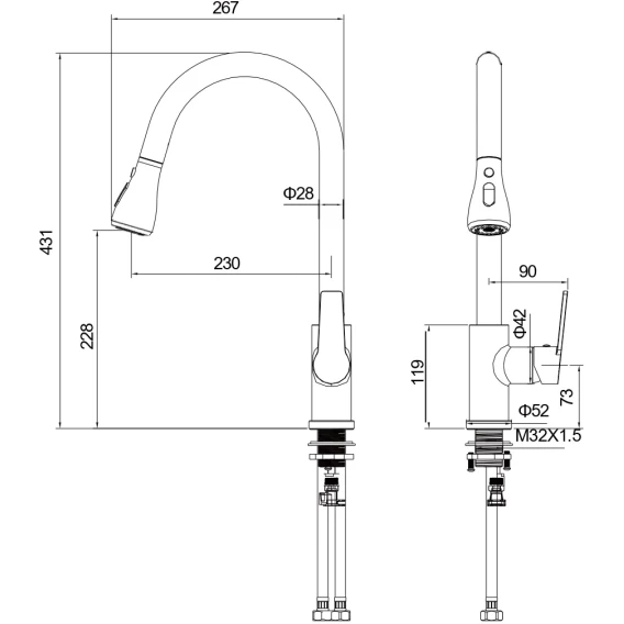 Высота излива 22.8 см