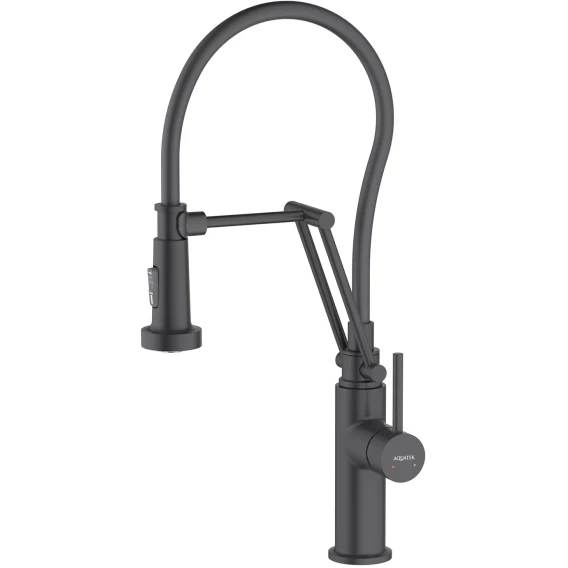 Смеситель для кухни Aquatek Европа AQ1388MB с гибким изливом, черный матовый
