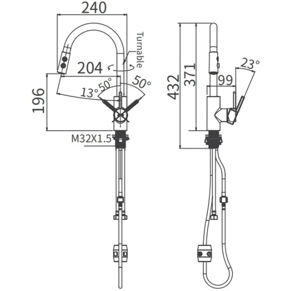 Смеситель для кухни Arrow AG4506 с выдвижным изливом, хром
