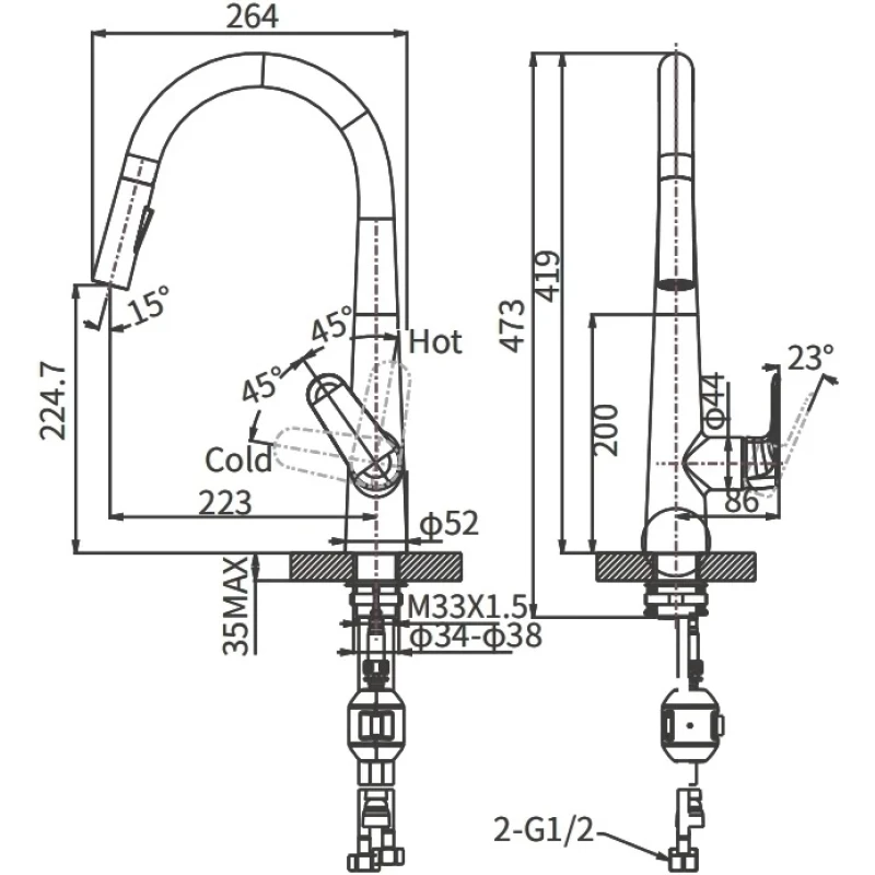 Крепление, Аэратор, Гибкая подводка, Душевой шланг, Душевая лейка