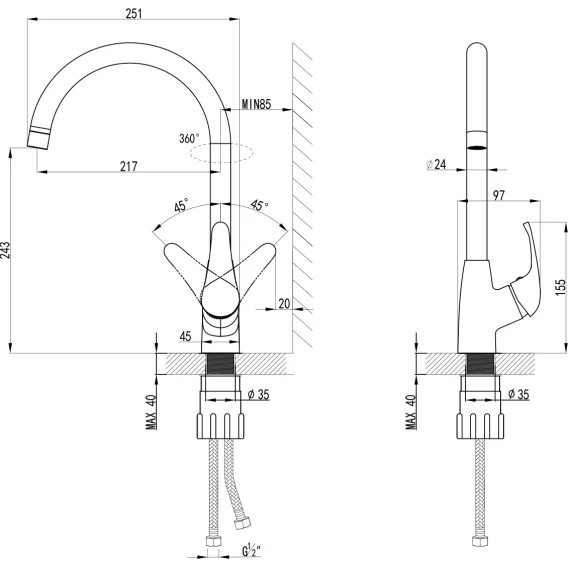 Смеситель для кухни Damixa Eclipse 310720300 черный матовый