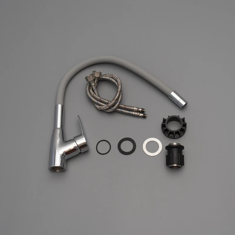 Смеситель для кухни AWP Sintur K1003CG с гибким изливом, хром/серый