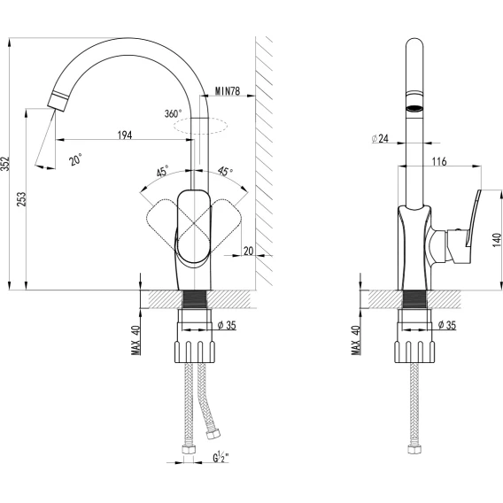 Крепление, Аэратор, Гибкая подводка