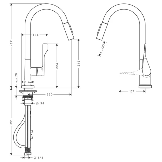 Крепление, Аэратор, Гибкая подводка, Душевой шланг, Душевая лейка