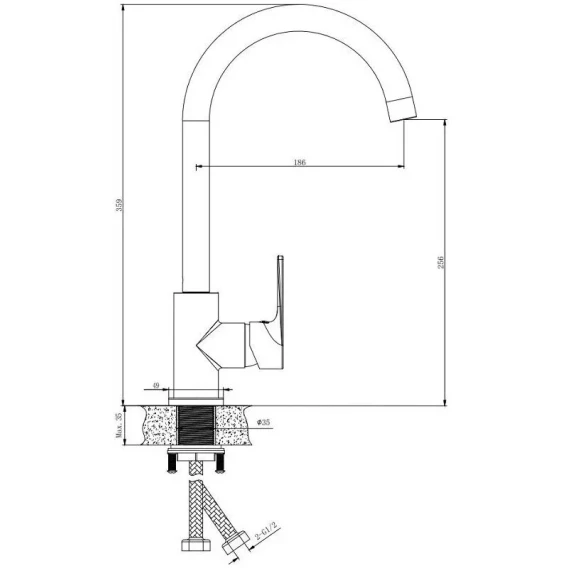Высота излива 25.6 см