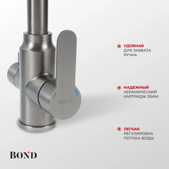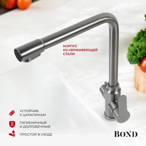 Смеситель для кухни Bond Smart B65-0477 с подключением к фильтру, графит матовый