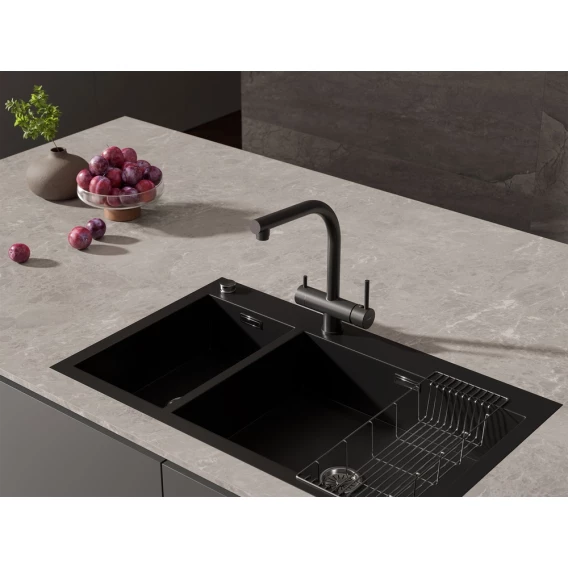 Смеситель для кухни Cersanit Crea A68223 с подключением к фильтру, черный матовый