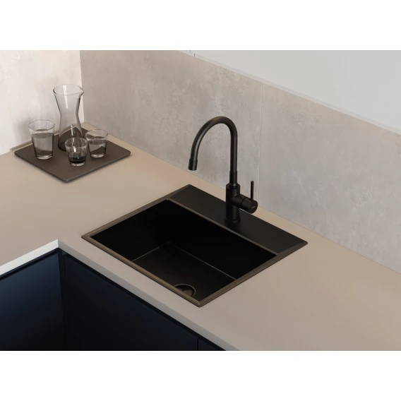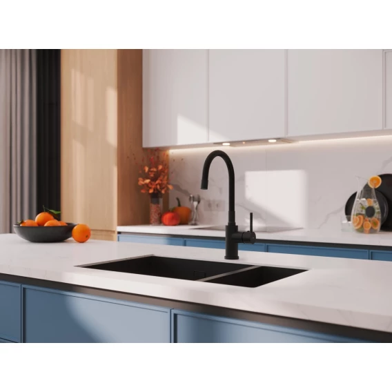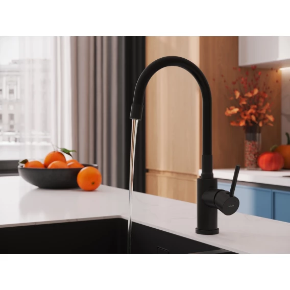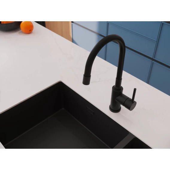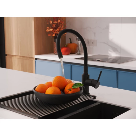 Смеситель для кухни Cersanit Melar A68234 с гибким изливом, черный матовый