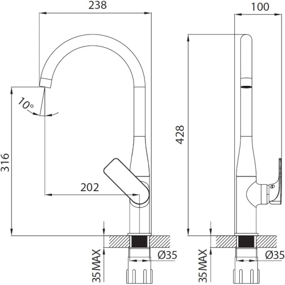 Высота излива 31.6 см