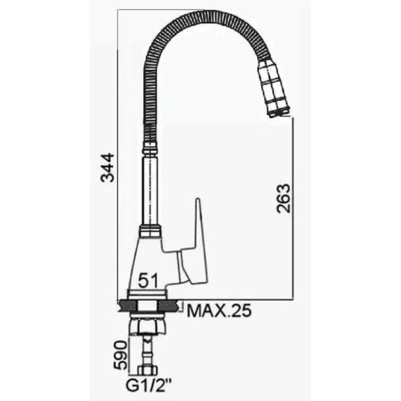 Смеситель для кухни D-Lin D150362-Q с гибким изливом, хром