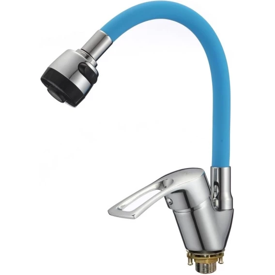 Смеситель для кухни D-Lin D150422-6T с гибким изливом, хром/синий