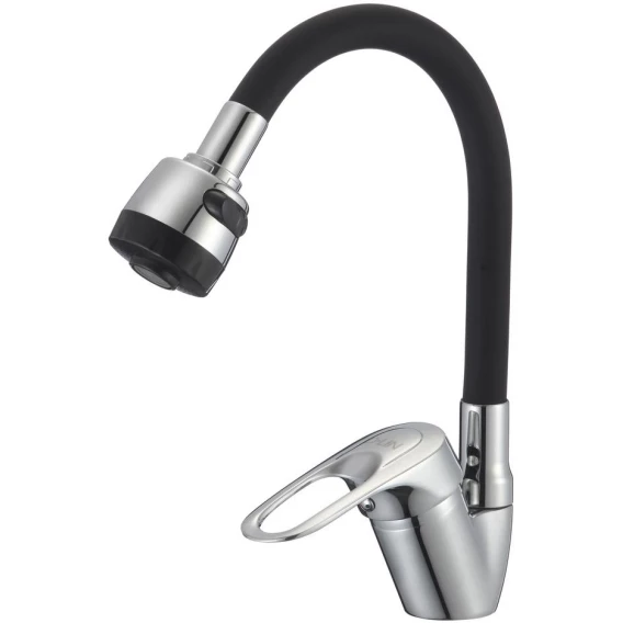 Смеситель для кухни D-Lin D150628-1T с гибким изливом, хром/черный