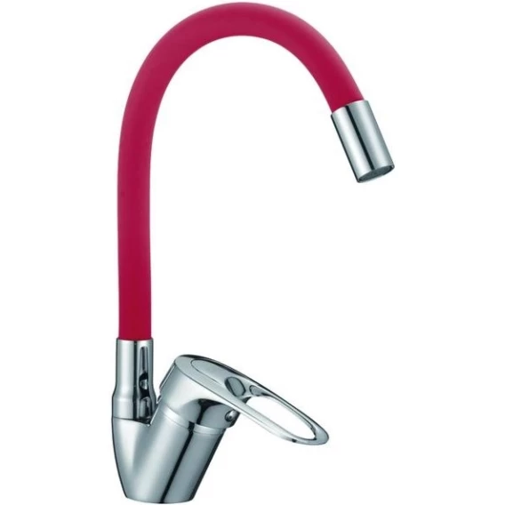 Смеситель для кухни D-Lin D150628-4C с гибким изливом, хром/красный