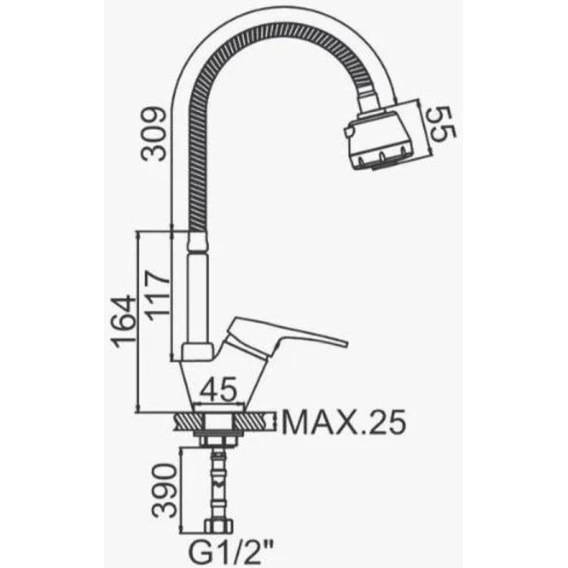 Смеситель для кухни D-Lin D150628-T с гибким изливом, хром