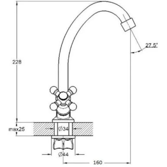 Длина излива 16 см