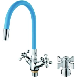 Смеситель для кухни D-Lin D153807-6 с гибким изливом, хром/синий
