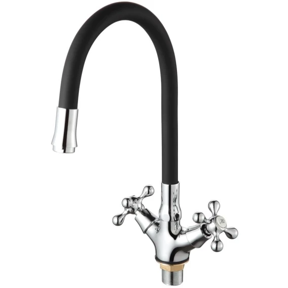 Смеситель для кухни D-Lin D153810-1 с гибким изливом, хром/черный