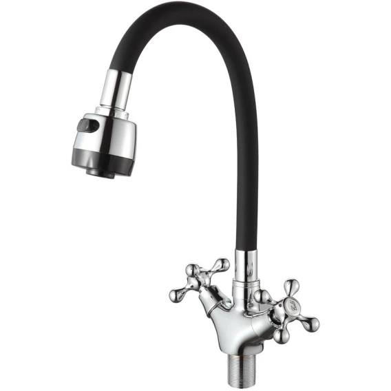 Смеситель для кухни D-Lin D153810-1T с гибким изливом, хром/черный
