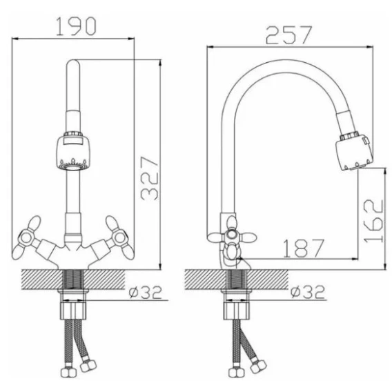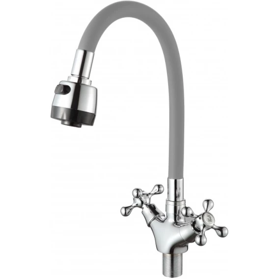 Смеситель для кухни D-Lin D153810-2T с гибким изливом, хром/серый