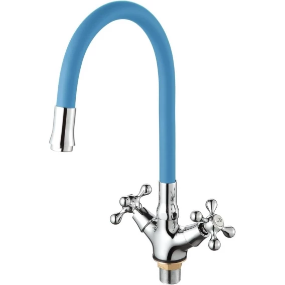 Смеситель для кухни D-Lin D153810-6 с гибким изливом, хром/синий