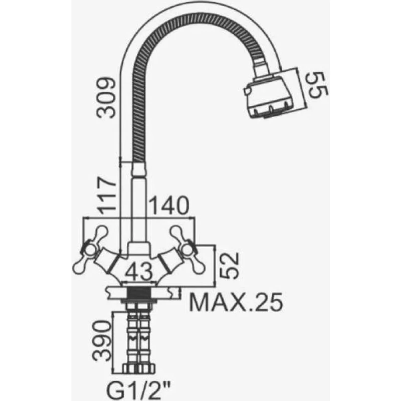 Смеситель для кухни D-Lin D153825-T с гибким изливом, хром