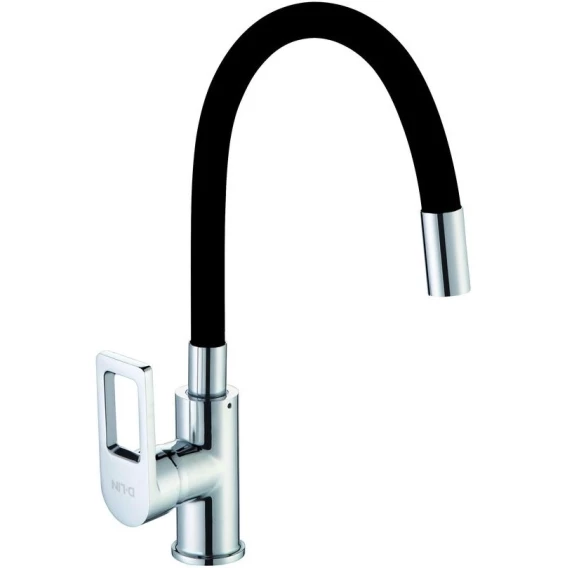 Смеситель для кухни D-Lin D155308-1 с гибким изливом, хром/черный
