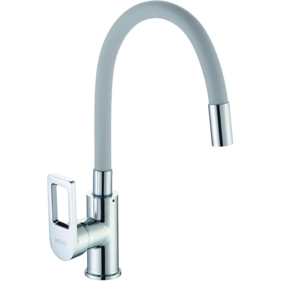 Смеситель для кухни D-Lin D155308-2 с гибким изливом, хром/серый