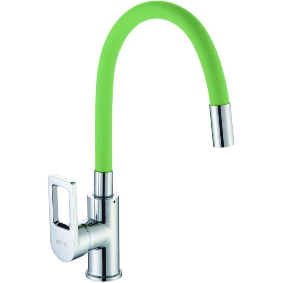 Смеситель для кухни D-Lin D155308-5 с гибким изливом, хром/зеленый