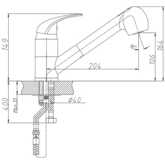 Смеситель для кухни D-Lin D158602 с выдвижным изливом, хром