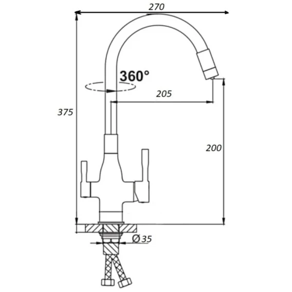 Крепление, Аэратор, Гибкая подводка, Душевая лейка