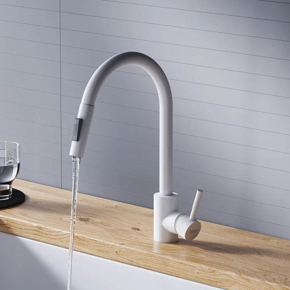 Смеситель для кухни Dorff Logic D3007533 с выдвижным изливом, белый матовый