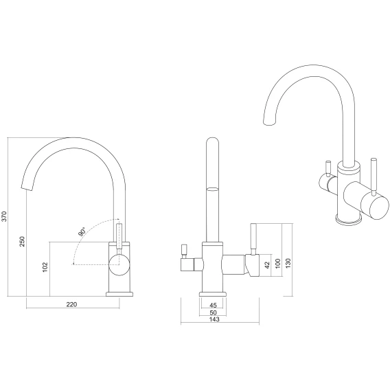 Смеситель для кухни Emar 3007.12 с подключением к фильтру, оникс