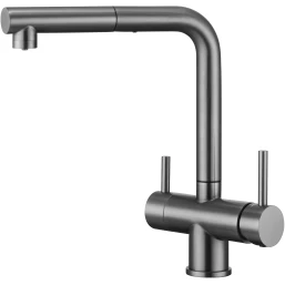 Смеситель для кухни Emar ECB - 7017 PVD dark с подключением к фильтру, выдвижным изливом, вороненая сталь