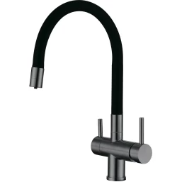 Смеситель для кухни Emar ЕС - 3015 PVD Dark с подключением к фильтру, гибким изливом, вороненая сталь