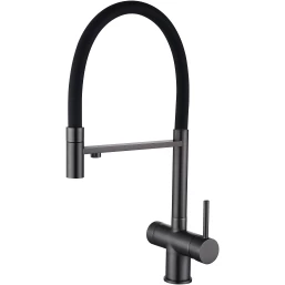 Смеситель для кухни Emar ЕС - 7024 PVD Dark с подключением к фильтру, гибким изливом, вороненая сталь