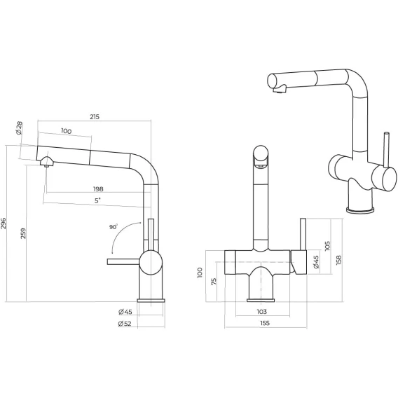 Крепление, Аэратор, Гибкая подводка, Душевой шланг, Душевая лейка