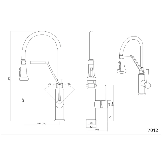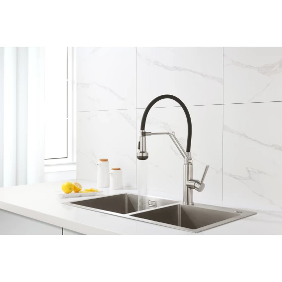 Смеситель для кухни Emar ЕСВ 7012 с гибким изливом, сатин