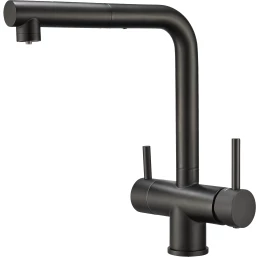 Смеситель для кухни Emar ЕСВ 7017 Black с подключением к фильтру, выдвижным изливом, черный матовый