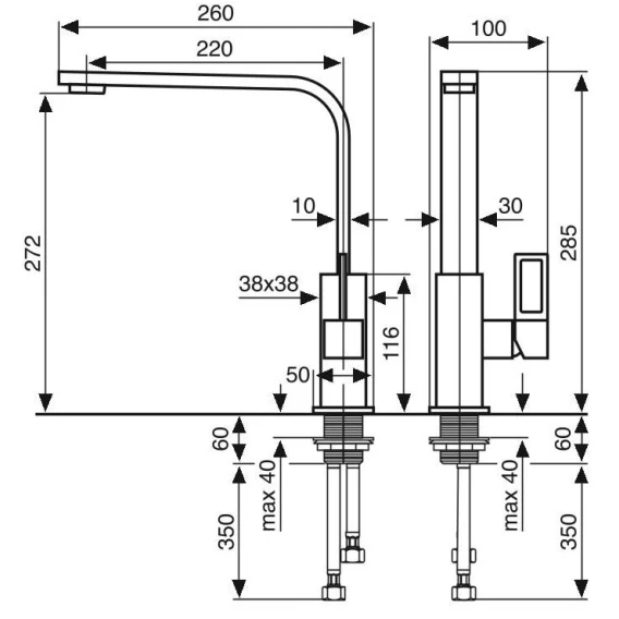 Высота излива 27.2 см