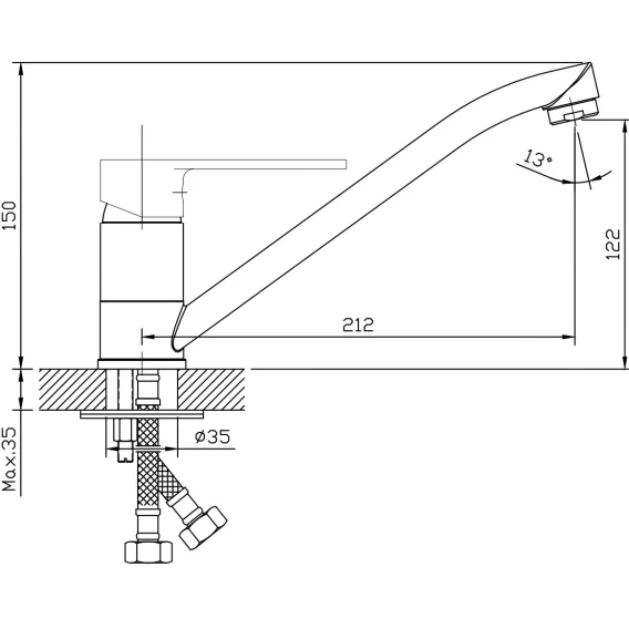Длина излива 21.2 см