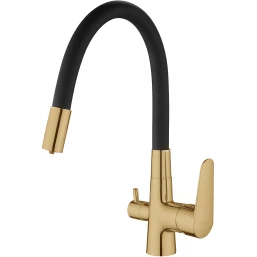 Смеситель для кухни Esko CoraL CL03GB с подключением к фильтру, гибким изливом, золотой матовый/черный