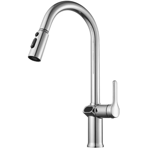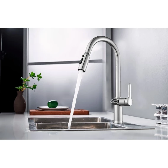 Смеситель для кухни Esko K15 LED с выдвижным изливом, хром