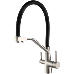 Смеситель для кухни Esko K25 B с подключением к фильтру, гибким изливом, нержавеющая сталь/черный