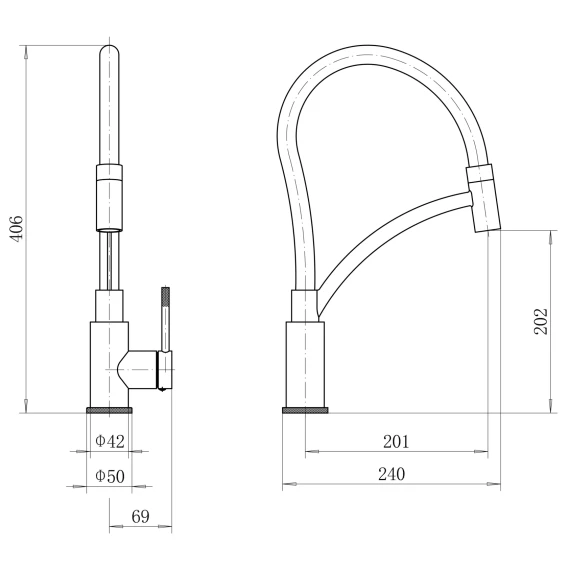 Смеситель для кухни Fashun A54033 с гибким изливом, сатин