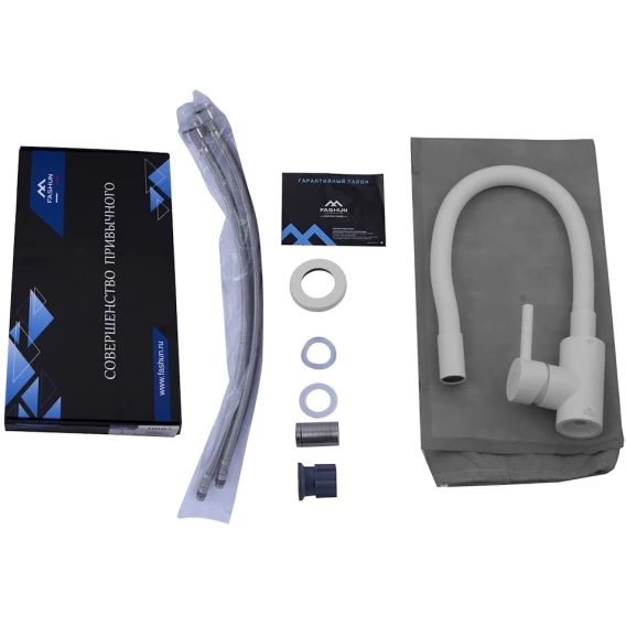 Смеситель для кухни Fashun A54101N-8A с гибким изливом, белый