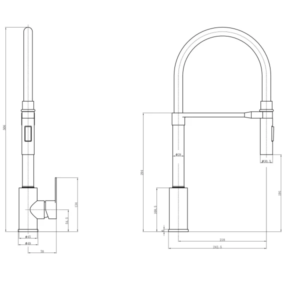 Длина излива 21.8 см