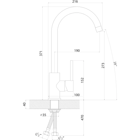 Длина излива 19 см