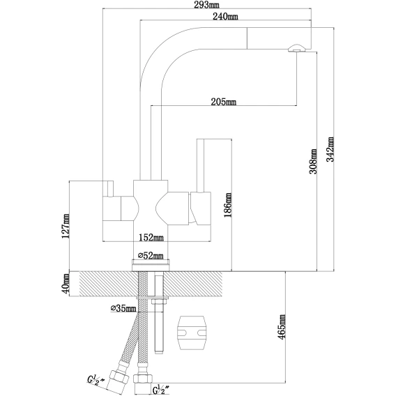 Крепление, Аэратор, Гибкая подводка, Душевой шланг, Душевая лейка