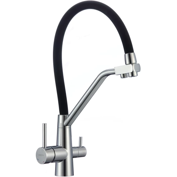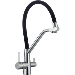 Смеситель для кухни Fmark FS0662-A01 с подключением к фильтру, гибким изливом, хром/черный